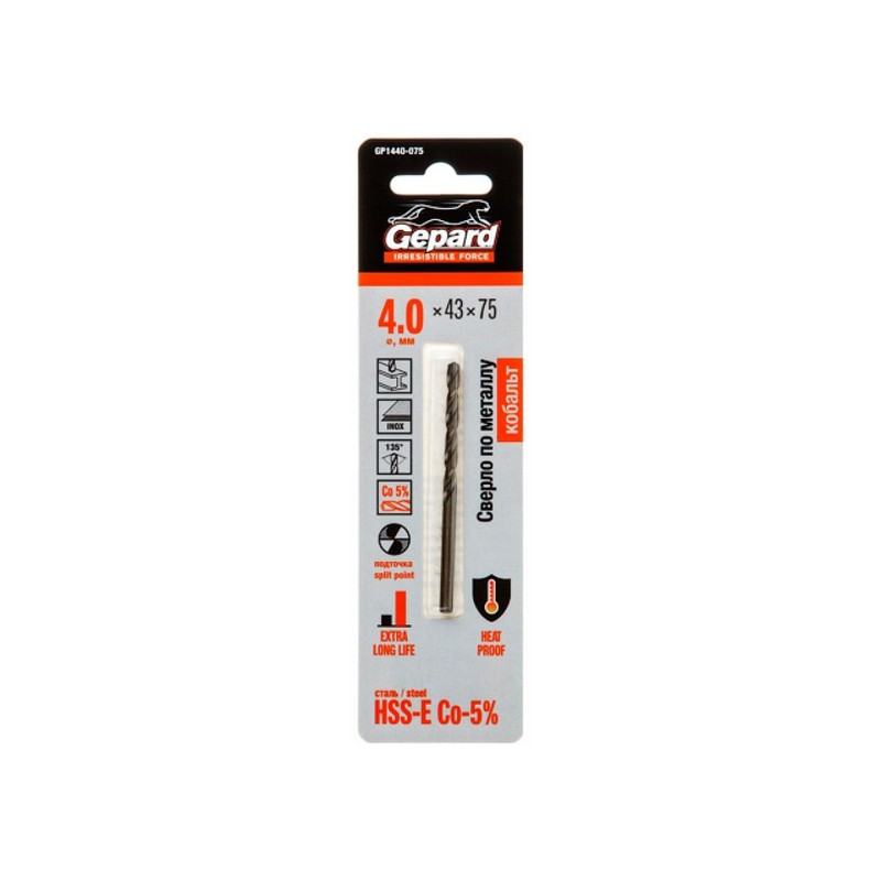 Сверло по металлу 4,0х75мм HSS-Co 5% GEPARD GP1440-075