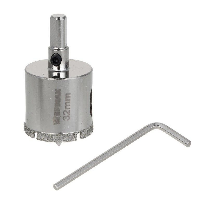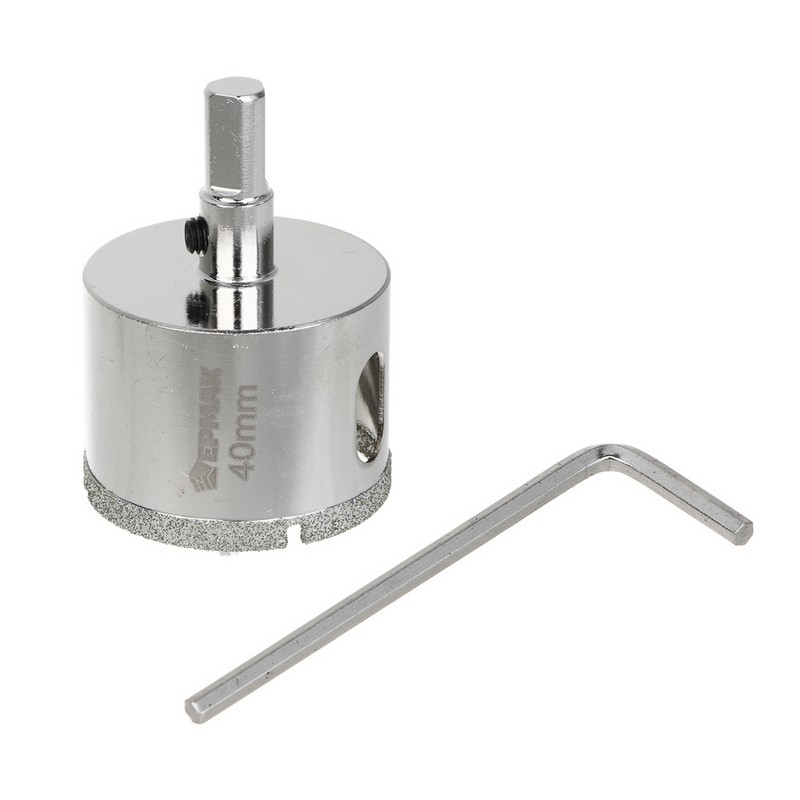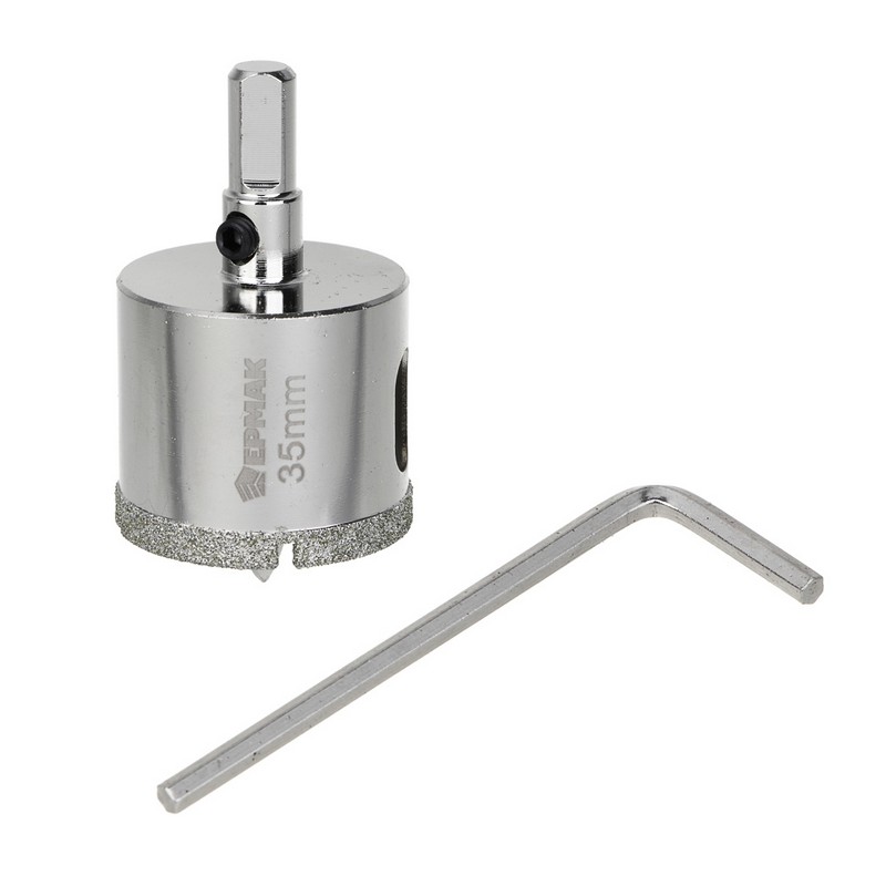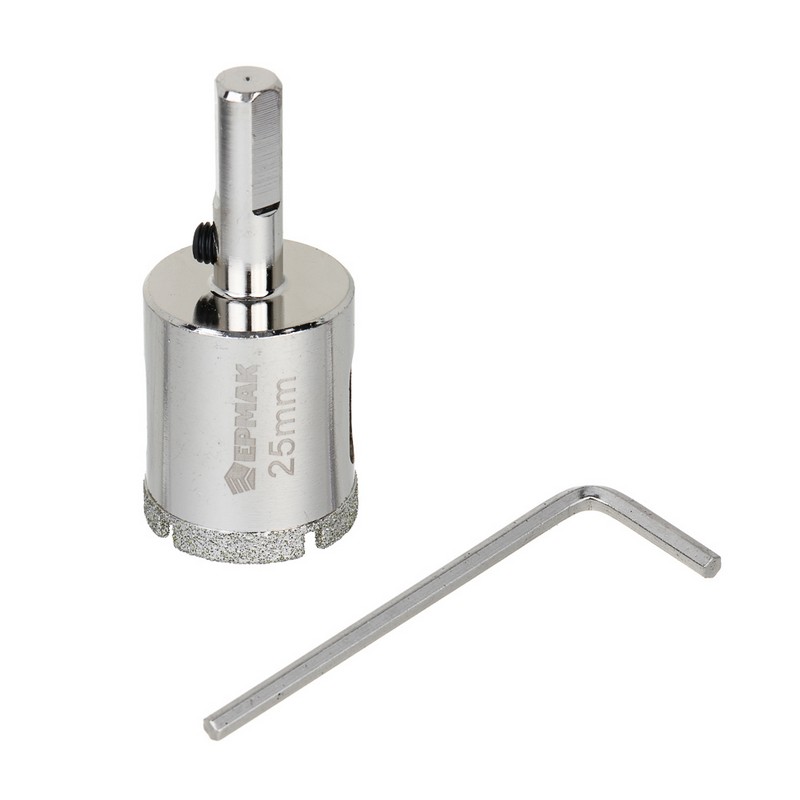 Коронка алмазная по керамике/стеклу 25мм Р45 с центр.сверлом, 3-гран. хвостовик ЕРМАК 602-009