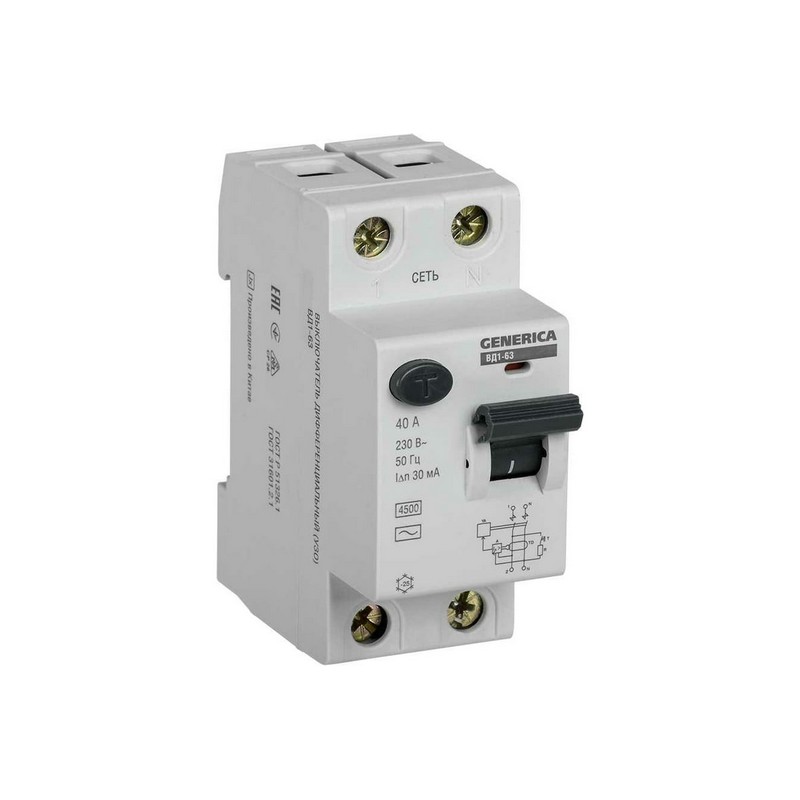 УЗО 2п 40А 30мА ВД1-63 GENERICA MDV15-2-040-030