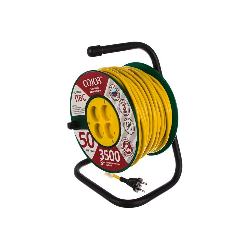 Удлинитель на катушке 4-мест. 50м ПВС 3х1,5 (3500вт) СОЮЗ 481S-3605