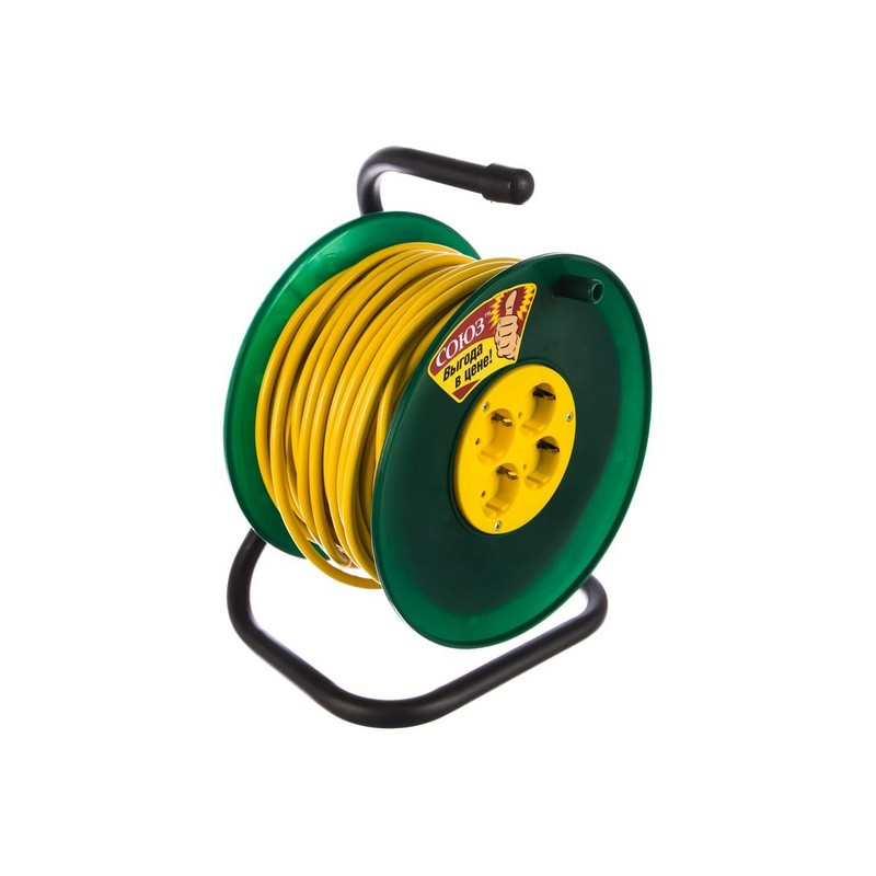 Удлинитель на катушке 4-мест. 50м ПВС 2х1,5 (3500вт) СОЮЗ 481S-3305